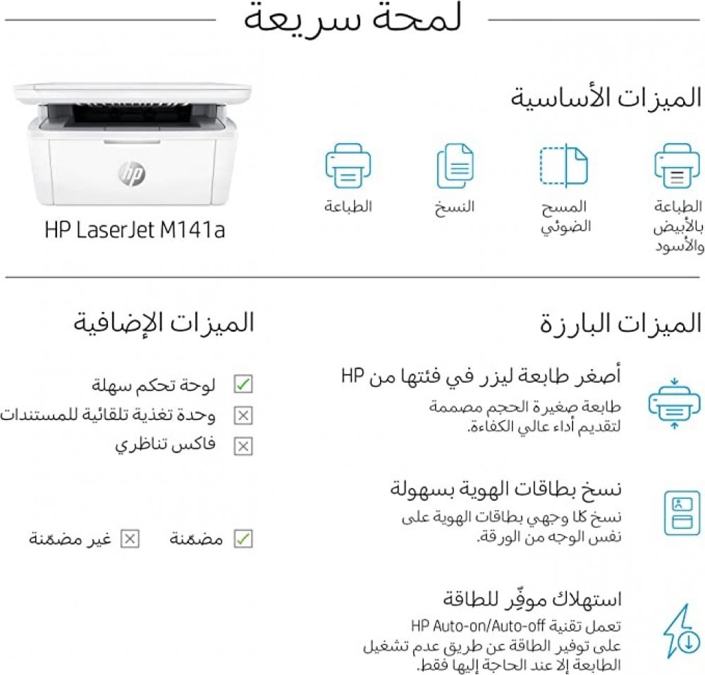 طابعة اتش بي ليزر اسود | HPMFP 141A طباعة الكل في واج ; للبيت و المكتب ALL IN ONE