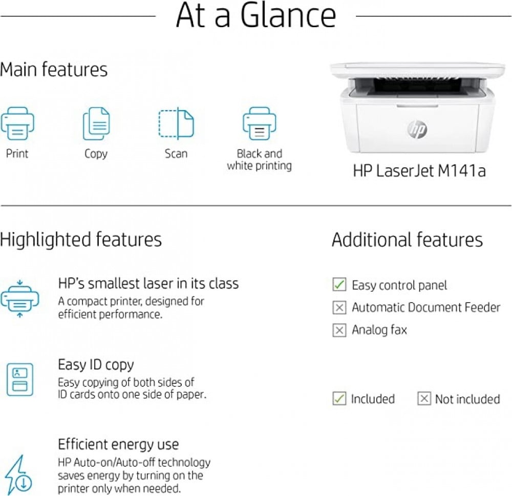 طابعة لاسلكية HP LaserJet MFP M141w (7MD74A)